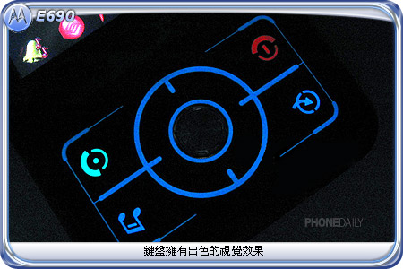 E690 的键盘设计采用和 V3 类似的一体式片状设计,视觉效果以及实际使用的手感皆出色。在按键的排列方面,E690 将所有按键集中在屏幕下方,操作上的便利性因此提升不少。键盘的背光采用淡蓝色的灯光设计,拥有温和的视觉效果。