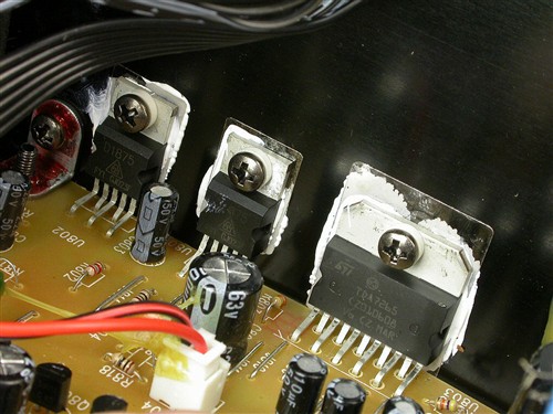 高音通道采用了1875功放芯片。由于多媒体音源普遍存在“数码声”,听感较为粗糙,而1875音色丰满圆润,高频柔和细腻,能够中和多媒体音源较为粗糙的数码声,因此用在高音通道中非常适合。
