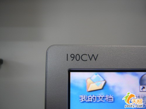 OSD调解按钮设计在弧线型设计的凹空的地方,设计比较独特,有点像优派VA703OSD调解按钮的设计。长方形的按键与19寸宽大屏幕设计统一,使用起来比较方便。在屏幕的左上角是产品的型号。