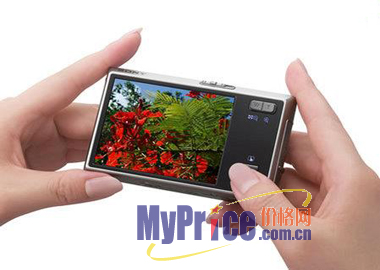 T50与前身T30相比其最大的变化就是在液晶屏上有所改变。T50的3.0英寸触摸式屏给数码相机带来把两种新的功能,其一就是“触摸式定点对焦”,即手指点到哪里,焦点就对在哪里。在拍人像照片时,通过用手在屏幕上的指指点点,就可以把焦点准确地锁定在人物面部;其二就是“涂鸦”功能,用户可以用手指在LCD上涂涂画画,尽情发挥自己的创意。在这里要说明的是触摸屏很早就应用于DV,是一种成熟的技术,触摸屏表面经过特殊处理,不必担心会有手印和划伤。