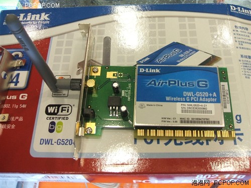 这款PCI无线网卡型号为DWL-520+A,它同样采用了散热金属片来保护芯片,天线也是可拆卸的,价格也很厚道。