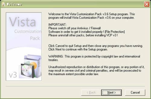 而Vista Customization Pack软件是模拟Vista的补丁包,自带一个设置工具,使用起来非常方便,如果想要在XP上感受Vista的话这个东西应该是最适合的,大家感兴趣的话,可以下载这个软件体验一把。