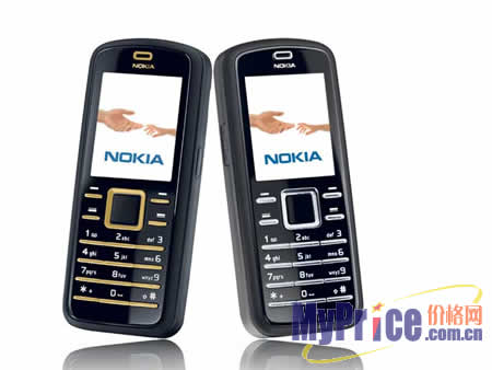 诺基亚6080采用了诺基亚经典的直板造型,整体方方正正,棱角分明,就连导航键都是正方形,阳刚气十足。黑色主基调加上银色或者金色点缀,稳重之中不失时尚品位。它的体积大小为105.4×44.3×18.6(mm),重量约为91g,整体还算小巧,拿在手中或是放在口袋里都不成负担。