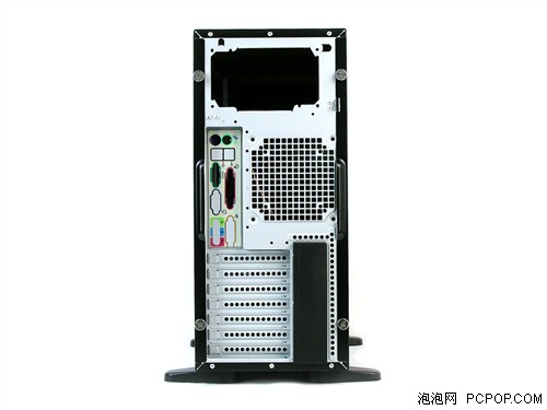 机箱的后侧看上比较简单,注意机箱后侧的排风扇位,根据CAG1.1标准,需要机箱在后侧有一个92mm的风扇位。多彩SH496机箱也配置了一个92mm的风扇位,而且这个风扇位还可以兼容80mm的风扇。