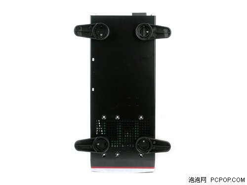 一般大家都不会特别重视机箱的底部,但它并非不重要。拿这款多彩SH496机箱来说,增加了脚垫可以使它比普通机箱防潮(地上有特别少的水就不用太担心了),另外这款机箱还有用于散热的进风孔,它要比机箱前面的进风孔效果更好。