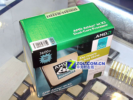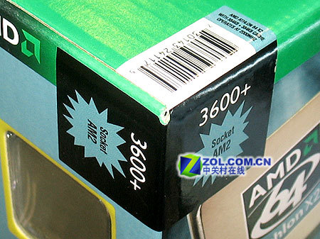AM2接口双核Athlon 64 X2 3600+处理器外包装角标注上标注了“3600+ Socdet AM2”字样,单个核心频率为2.0GHZ,缓存容量为384KB+384KB,即每个核心都拥有128KB一级缓存和256KB二级缓存。
