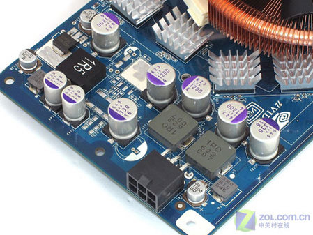 影驰7900GS加强版采用了深蓝色的P455公版,做工非常漂亮。显卡供电滤波部分全部采用了三洋Oscon系列的SVP固态电容和抗干扰的高品质封闭式电感,保证了显卡即便在最苛刻的环境下仍然能稳定运行。