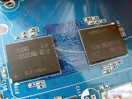 显存方面,影驰7900GS加强版显卡采用了8MB*32Bit规格的三星1.2ns GDDR3显存颗粒,8颗组成256MB/256Bit规格的显存规格,显卡核心/显存默认出厂频率为550MHz/1600MHz,比公版建议频率高很多,是目前规格最高的一款7900GS。
