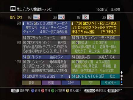 本机支持最多同屏显示4个时段节目,具备根据节目名称、种类快速查找的“高速检索”机能。