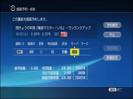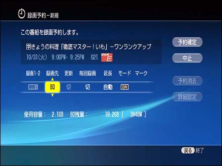 在进行预约录像时,录制媒体除了硬盘/DVD外,还可以直接刻录到BD-R/RE内,按照分辨率的不同可选DR/XR/SR/LR/ER等5种模式。