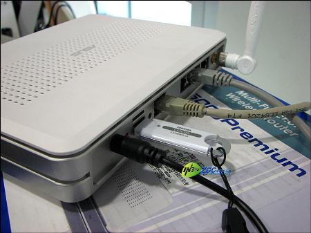 在WL-500GP后部可以插入一个U盘,或者一个移动硬盘。