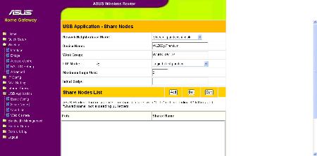 启动IE 在地址栏中输入 192.168.1.1,用户名admin 密码 admin 就可以进入WL-500GP设置界面,与ASUS大部分路由器一样,这款无线路由器的风格我们很熟悉,这里我们笔记本关新的是其强大的USB设备支持能力。