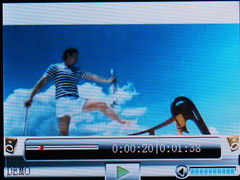虽然FM表现不良,但产品的视频功能还是相当强大的,产品支持MPEG4编码的AVI文件,可以支持320x240@18fps以及220x176@30fps,画面清晰细腻,同时26万色效果不俗。