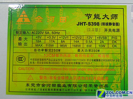 金河田节能大师JHT-S398电源铭牌