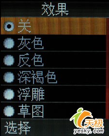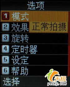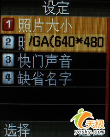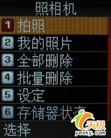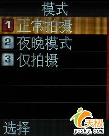 在拍照菜单上,这款三星E428还是给我们提供了较为丰富的调节选项,虽然摄像头的象素只有30万,但是从这些详细的功能设置以及菜单选项上,我们还是能够看出一种一丝不苟的态度。手机还支持夜间拍摄模式,但是经过我们的试验,对于一款30万象素的摄像头来说,夜间拍摄的模式意义实在不大。