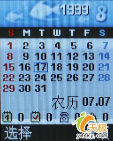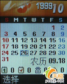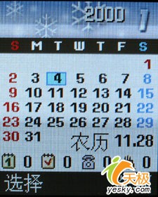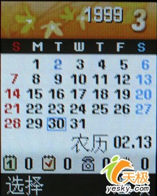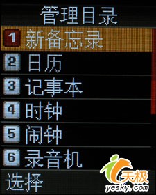 在管理目录和娱乐功能选项中,我们看到这款手机为我们提供了记事本,日历,闹钟,录音机以及Java等功能。但是我们却并没有在这款手机中找到MP3播放功能,并且这款手机也没有为我们提供存储卡扩展功能,这不能不说是一个遗憾。