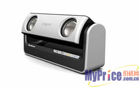 CREATIVE TravelSound 400是一款专门针对笔记本电脑和MP3播放器设计的便携式音箱。这款音箱采用银黑色调组合,外壳质感很好,整体上散发出一种雅致的古典美。单元部分采用新颖的旋转式设计,可做180°的旋转,随着喇叭的闭合电源自动关闭,避免对喇叭的损伤,充满人性化。
