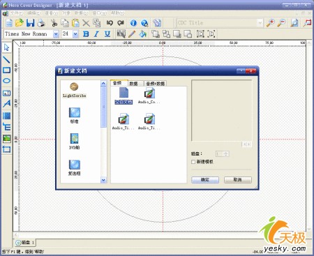 Nero标签制作程序,打开“文件-新建”,弹出新建文件对话框。