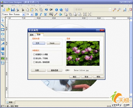 双击新建的光盘标签,即会弹出背景属性对话框,在此选择一个图片背影文件