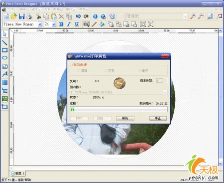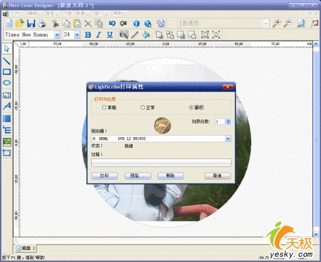 依旧打开“文件-打印LightScribe”,弹出打印窗口,在这里有草稿、正常、最好三个选项供选择,以打印了不同效果的盘面。选择后单击打印按钮开始打印过程。