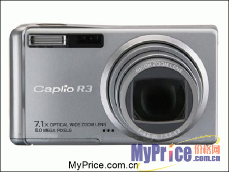 理光R3具有500万像素的CCD。26mm轻巧卡片的机身下容纳了7.1倍的大变焦, 28-200mm焦距对于家用人士是个很好的选择。ISO感光度范围在64 - 800之间可调,可获得更清晰的图像。最大光圈F3.3-F4.8。可设置长时间曝光8、4、2、1秒,快门速度1-1/2000秒, 短片1/30–1/2000秒。独有的角度修正功能, 可使歪的角度修正为正面。