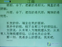 电子书浏览支持TXT文本格式,一屏可以显示11行每行19个汉字,支持书签的设置。
