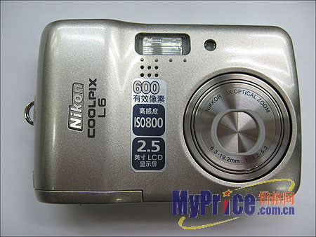 尼康L6使用一枚1/2.5英寸600万有效像素CCD,使用等效焦距为38-116mm的3倍光学变焦尼克尔镜头,最大光圈f/3.2-5.3。另外L6 的感光度最高可达到 ISO 800。.5英寸液晶显示屏,显示精度为11.5万像素,是目前入门级机型的主流规格。另外该机还可以以录制最大分辨率是640×480每秒钟30帧的有声短片。