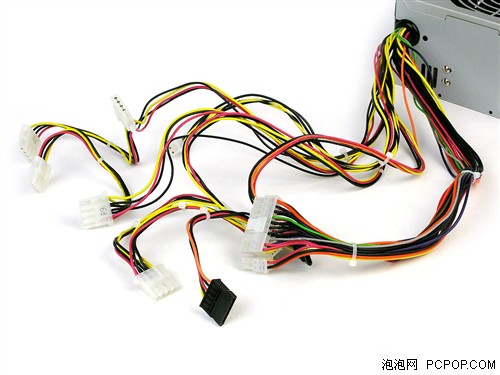 在输出的接口上全汉精灵王电源还是比较丰富的,有6 个D型接口、2个SATA接口和一个20pin/24pin可互换主板电源接口。