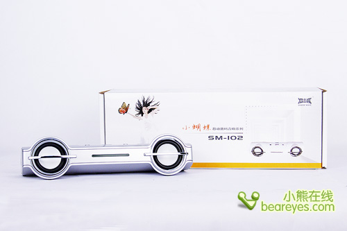 今年冲击波最新推出了其小蝴蝶系列三款便携式迷你音箱SM-101、SM-102以及SM-103,而本站拿到的就是中间号码,SM-102。
