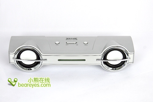 两个1.5英寸的全频段扬声器单元采用了塑料振膜,同时音量大小的按钮以及电源开关都设计在了音箱的顶部,操作起来简单,方便。