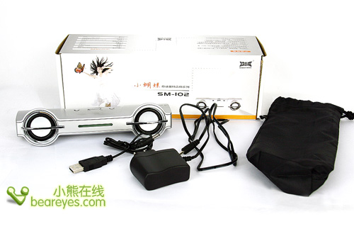 SM-102的配件比较齐全,包括USB电源线,外接电源以及一个音箱套。