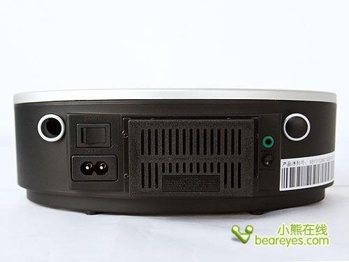 M11的后面可以看到一个倒相孔设计在了左测,电源开关,电源接口以及音频信号接口都设计在了后面。同时我们还能看到,M11还设计了散热片,我们可以知道,M11的功率不会小了。