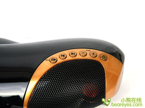 A250不仅设计了调节音量大小的按钮,还加入了播放,快进,快退,暂停和停止按钮来控制PC机播放,欣赏音乐时,一切都可以在音箱上操作了,十分方便。