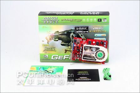 铭?7300GT智能增强版卡身显得小巧玲珑,散热器块头比较大。
