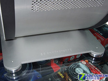 底座的前部蚀刻有20周年纪念的英文,表明了这款机箱的身份。底座方面使用了更加厚实的2mm左右的铝板,边缘做了波浪形的切割,细节处理到位。
