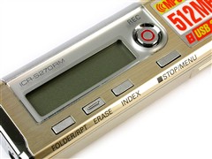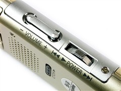 按键设计方面比较合理,最为主要的录音键被安排在了产品正面屏幕旁边的明显位置上,屏幕旁边还有四个功能键,分别为文件夹选择键/重复播放键、删除键、索引键、停止/菜单键,而产品竖直放置时,右侧为转点通式的开机/歌曲选择键,以及音量调解键。这样的设定无论用哪只手持握录音笔,都可以用单手完成所有操作,设计非常到位。