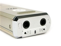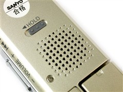 产品顶端则设置有耳机插孔和外置MIC插孔,另外还有内置左右声道麦克风,可选择外置MIC录音(非标配,需另外购置),也可选择内置MIC。产品背部设有一个HOLD键,以防产品在包包中误触录音键而消耗电量。