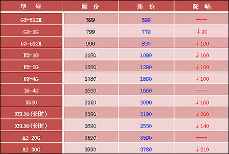 前几天我们注意到,刚上柜的iAUDIO U3 4GB版本上市价竟然不是原来所说的1780元,而是以1680元出现在大家面前,不过今天从iAUDIO的商家处得到消息,此次调价的不仅仅是U3 4GB一款,而是iAUDIO全线产品!