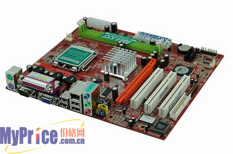 供电部分,该主板为三相电源回路供电,配备了全封闭电感和直插式高品质电容,很好地保证系统的稳定运行。扩展槽方面,主板提供了1条PCI-E X16插槽和3条PCI插槽。并集成6声道ALC655音效芯片和100M网卡。提供了一个ATA 100/133和2个SATA接口,扩展性很好,方便用户升级。
