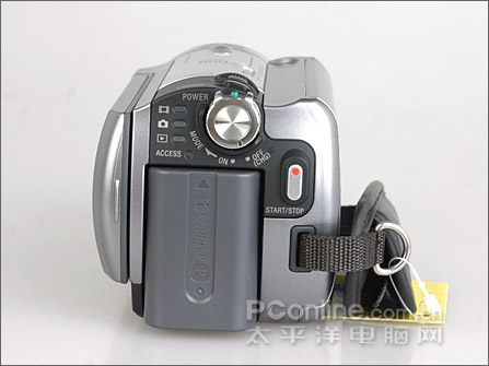 索尼SR60E在机身后侧的设计和以往机型大致一样,采用电池后置,只是在装载厚电池的时候会稍感凸出。它标配的电池型号是FP50,大约可以工作100分钟,可见SR60E还是蛮省电的。只是索尼内置30G硬盘,可以录制7小时多的高质量录像,若要连续录制,则需准备多个电池。