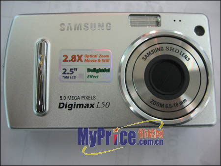 三星L50采用了1/2.英寸500万像素CCD,2.8倍光学变焦镜头,相当于35mm相机的39-110mm,最大光圈F3.2-5.4。最近微距10cm。4倍的数码变焦功能。ISO感光度可在50、100、200和400之间调节,快门速度为15-1/2000秒。白平衡模式包括有自动、阴天、晴天、荧光灯、白炽灯和自定义。动态方面,LC50支持以30fps的速度不限时拍摄大小为640×480像素的有声短片。机身内置32MB内存,采用锂电池供电,使用SD卡作为存储介质。