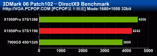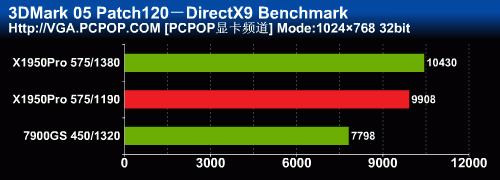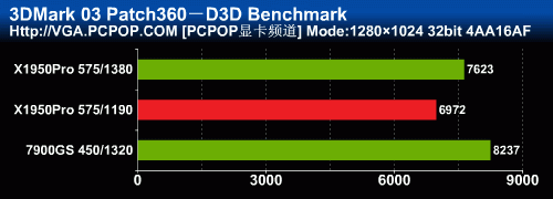 双敏非公版X1950Pro的显存频率较低,所以没能超越7900GS,但落后幅度已经不多了。