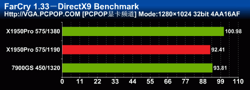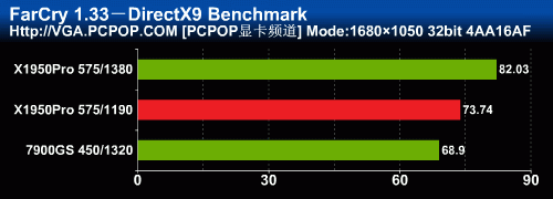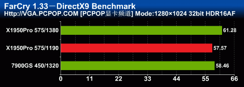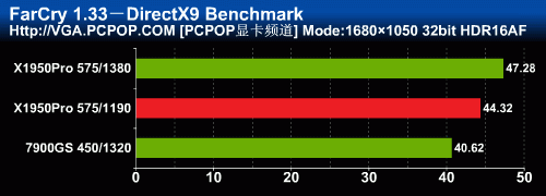 通过我们之前的评测来看,X1950Pro在FarCry中的AA性能几乎与512MB显存的7950GT相差无几,7900GS自然被拉开了很大的差距!