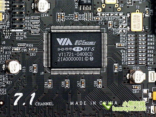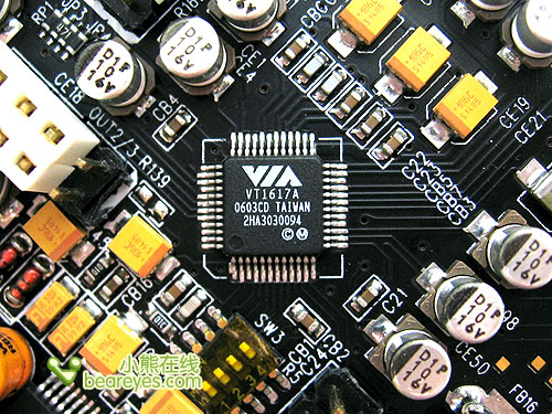 实际上VT 1617CODEC负责714W这块声卡1-6声道编解码,这个芯片在许多独立声卡以及主板集成声卡中都很常见,VT 1617与ENVY24 HT-S这款芯片是捆绑销售的。