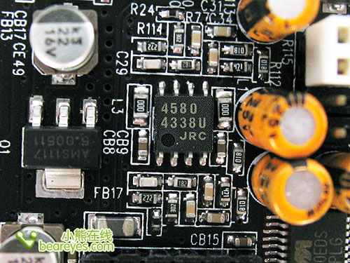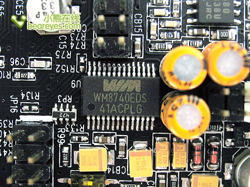 Wolfson“WM8740”高精度音频DAC,能够有效排除音频中的噪音影响,抑制电路间的互相干扰,实现音频信号的纯净传输。WM8740负责7、8声道的编解码。