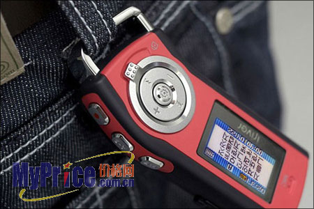 外观上T10依然延续了艾利和经典的三角造型,不规则的弯曲加上金属感十足的挂柄,使得这款MP3充满了动感的气质,而实际上T10正是一款运动型的随身听产品。T10的容量分别有256M、512M、和1GB三种规格,分别为绿色、红色和柠檬黄色,红色即512MB的正是T105。