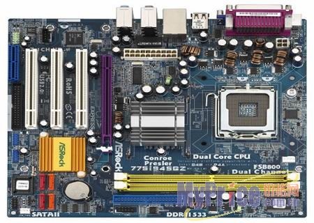 主板是连接计算机所有元件的核心支柱,它的重要不言而愈。一款坚固的主板可以让PC长久稳定地运行,让用户免除故障隐忧。Intel靠稳定的芯片组在商用PC领域取得了巨大的市场,这也是长久以来Intel系统架构的优势所在,所以Intel自家的Intel 945GZ芯片被选定为我们这台机器的核心。在众多板卡厂商中,华硕的口碑是无可质疑地稳定,奢华。华擎作为华硕的中端品牌继承了华硕稳定血统的同时放低了身价,我们只需630的价格就可以拥有稳定的PC核心。华擎775i945GZ分别由Intel 945GZ北桥芯片和Intel ICH7南桥芯片组成,不但支持Intel新一代65纳米的双核心处理器,而且还支持Conroe处理器。同时主板使用了主流的ICH7南桥来配搭,可提供四组SATA II标准接口,传输速度达3.0G/s,8组USB 2.0 全速接口,传输速度高达480Mb/s。它配备了两根DDRII内存插槽,支持最大2GB的DDRII533。Realtek的RTL8101L网络芯片,可实现自适应的10/100/M网络功能。主板音效方面则集成Realtek ALC888 7.1声道声卡,支持7.1声道高保质音频。