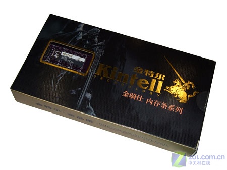 金特尔1GB DDR2-667内存采用大气的纸盒外包装,颜色为黑底金边,给人以“至酷”的感受。该产品隶属于“金骑士”系列。
