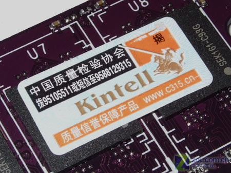 金特尔1GB DDR2-667内存表面粘贴有中国质量检验协会的防伪标签,消费者可以通过拨打电话或者发送手机短信的方式来查询产品真伪。