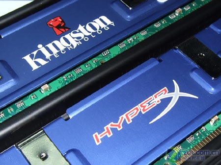 金士顿HYPER-X DDR2-750 2GB双通道内存正反面都安装了蓝色金属散热片,这个设计增加了产品在超频状态下的稳定性。